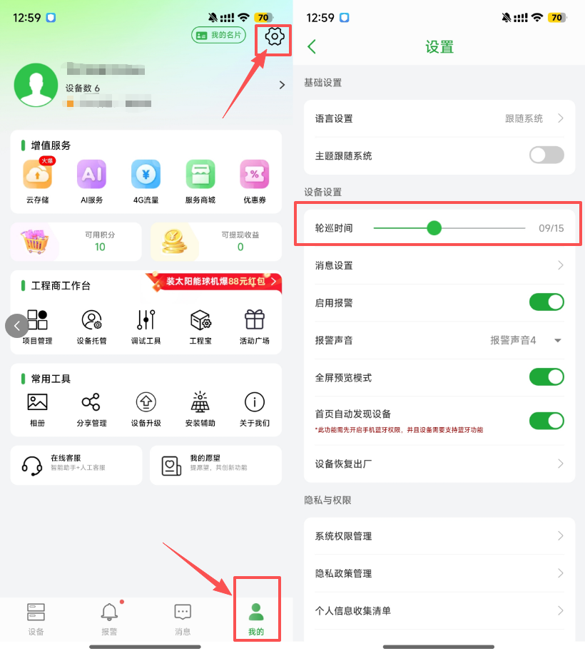 Q: 如何设置轮巡时间?