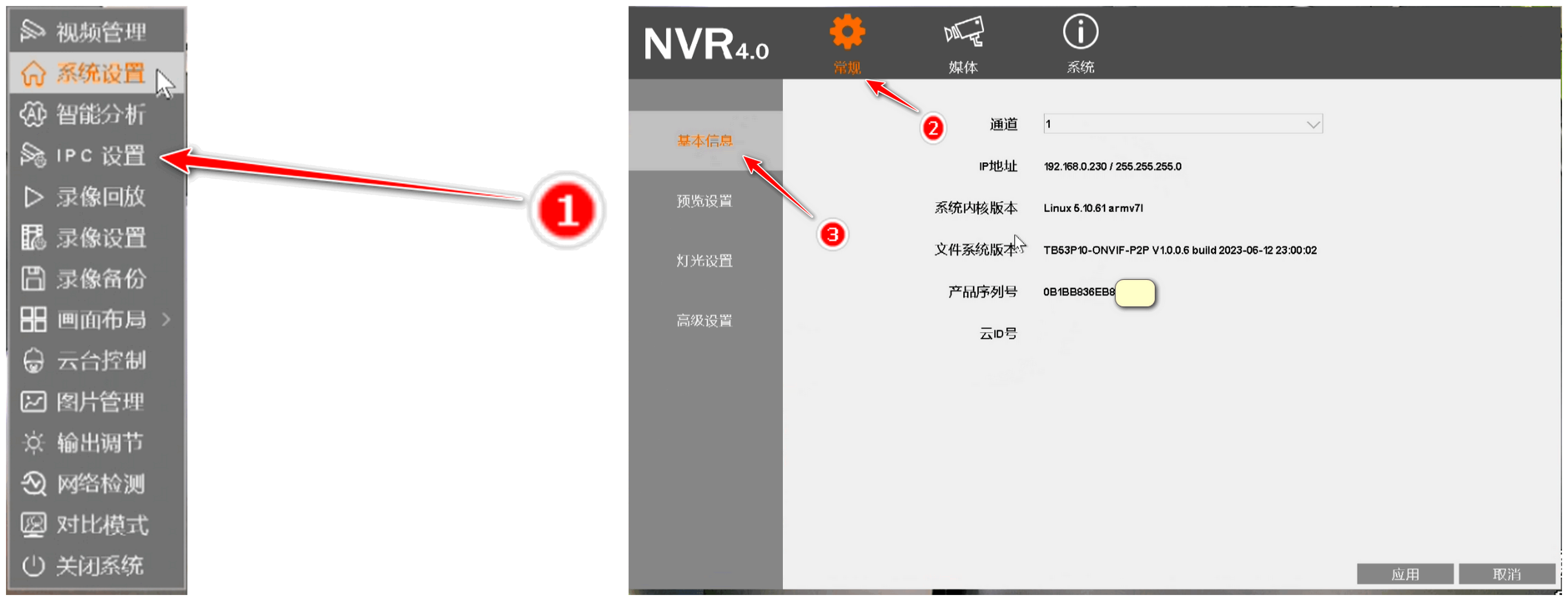您好,单击鼠标右键——IPC设置——在常规界面点击基本信息,筛选通道即可查看对应通道录接入摄像头的版本信息。