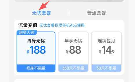 您好,无忧套餐指的是不限流套餐,如个人流量所需较大,可购买此套餐。注意:只可以手机端观看使用,
